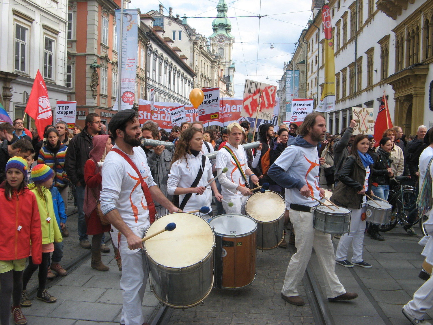 Am 18. April 2015 fand der weltweite Aktionstag gegen die Handelsabkommen TTIP, CETA und TiSA statt. Hunderttausende Menschen gingen auf die Straße und protestierten gegen Handelsabkommen, die Konzerninteressen über die Interessen von Mensch und Umwelt stellen. Auch in Wien, Salzburg, Linz, Klagenfurt, Graz, Innsbruck, Vöcklabruck, Freistadt, Wiener Neustadt, Villach und Gmunden gab es kreative Aktionen und Demos gegen TTIP, CETA und TiSA und für eine alternative Handelspolitik. Alle Infos und eine laufend aktualisierte Übersicht unter: www.ttip-stoppen.at/
