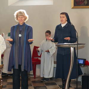 In der Wortgottesfeier ist mehr Raum für neue Elemente. So tanzte Barbara Koren mit einigen Frauen und Kindern den Tanz „Samen der Liebe“. Gebet ist nicht nur reden, singen, still sein … sondern auch mit Leib und Seele, mit dem ganzen Körper meinen Glauben zum Ausdruck zu bringen. Vor dem Segen zeigten die Kinder mit einer symbolischen Handlung – das Aufblühen „einer Blüte“ mit Seidentüchern – was es bedeutet, füreinander zum Segen zu werden.
